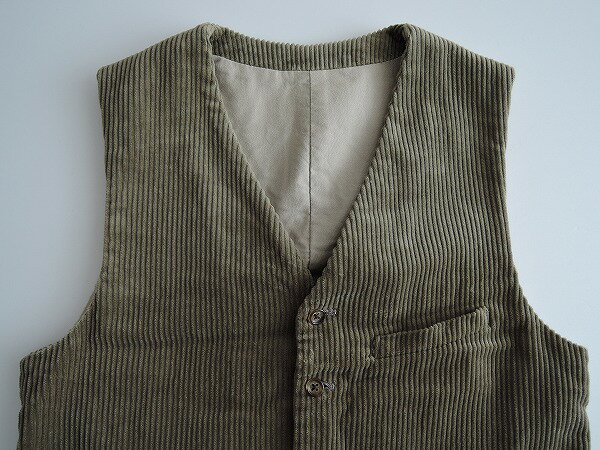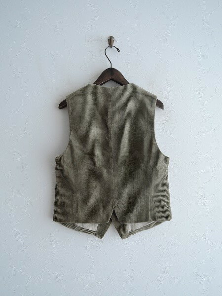 表記サイズ:F 実寸サイズ:肩幅33cm, 身幅43cm, 着丈49cm (多少の誤差はご了承ください) 素材:表地-綿100% 裏地-綿100% デザイン:TOUJOURSのコーデュロイベストです。