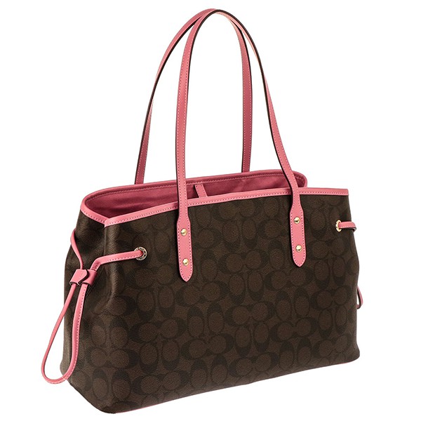 プレゼントや贈り物に、ギフトラッピングの追加はこちらブランドCOACH / コーチ 品番F57842 IMDGO サイズ約 H24×W32〜37×D16.5 cm 重さ約 707 g 持ち手長さ約 48.5 cm 持ち手高さ約 21 cm 仕様内側ファスナーポケット×2、内側ペンさし×1、内側ポケット×2、持ち手太さ 1cm、商品付属品 チャーム×1、A4サイズ対応、金具式開閉 素材PVCコーティングキャンバス 付属品 カラーブラウン×ライトピンク
