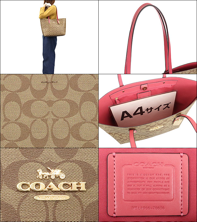 ●【コーチ COACH】 ラグジュアリー シグネチャー タウン トート 名称SIG TOWN TOTE 種類 バッグ/トートバッグ サイズ 横幅:上部43cm/下部34cm 高さ:30cm マチ:15cm ハンドル:55cm 重さ:790g 仕様間口:マグネットボタン開閉 内部:ファスナーポケット×1 ●B4サイズが入ります 素材PVCコーティングキャンバス×レザー カラー カーキ×ポピー IMN91 【金具の色】ライトゴールド 型番 F76636 付属品 なし 【2020 春夏 新作】 コーチ COACHのバッグ(トート トートバッグ)です。