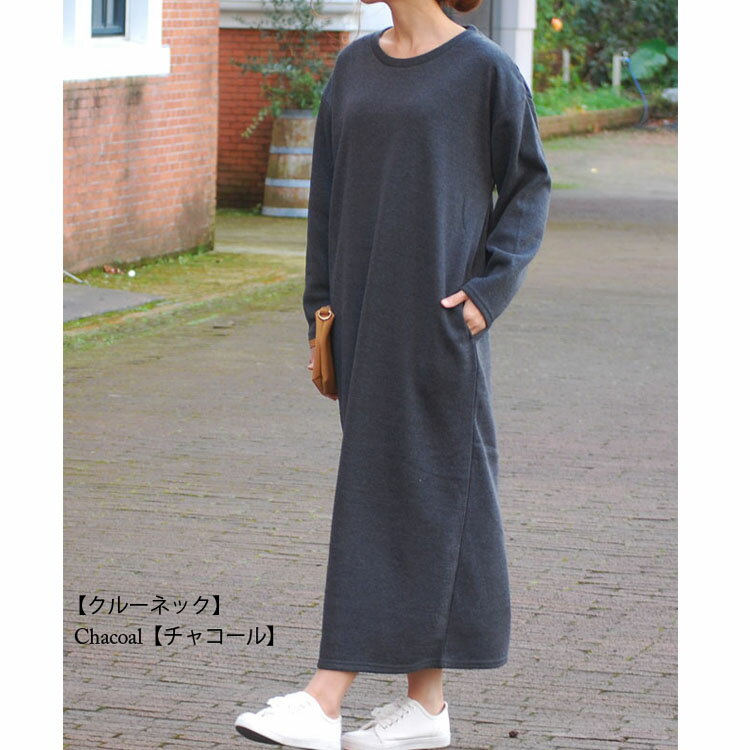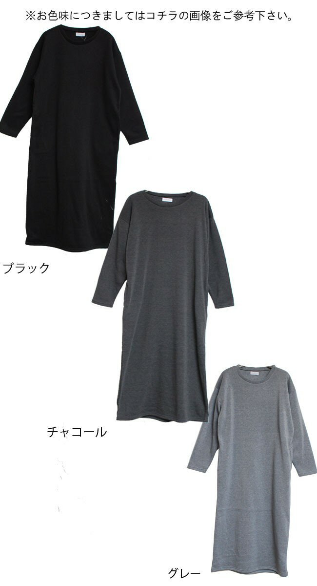 スリットとクルーネックで女性らしさをだした一枚でも キマるワンピース 着用イメージ サイズ・詳細 ■モデル身長:163cm ■サイズ:M〜Lサイズ ゆったりサイズ ■着丈 :123cm ■肩幅 :62cm ■袖丈 :50cm ■袖口 :12cm ■バスト:57cm ■裾周り:116cm ■素材 :ポリエステル100% ■カラー:ブラック・チャコール ■仕様 :裏起毛仕様・ポッケ付・伸縮性あり 【ご注意点】 ※お使いのディスプレイにより実際の色味と異なる場合がございます。